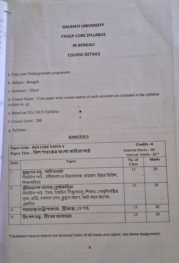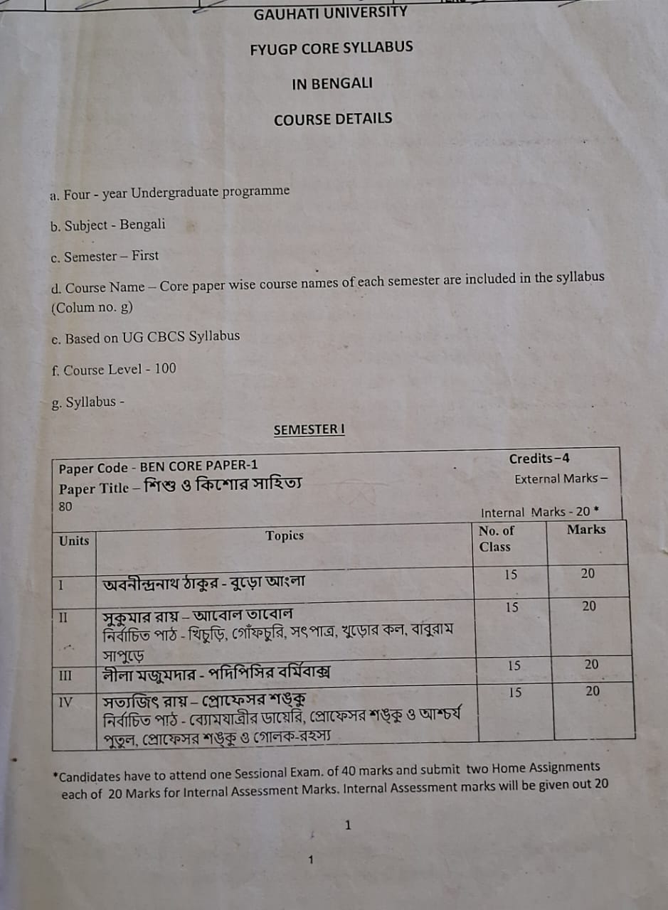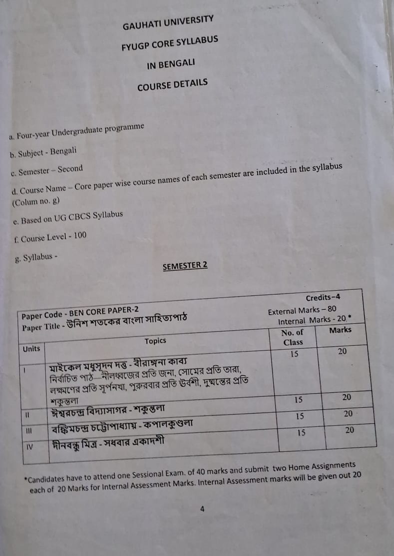 Student’s enrollment of Bengali department is very low, so the teachers can devote personal attention to each student. The Bengali department has its own library. Apart from books sourced from the Central Library, the Department procures personal reference books, text books & other course related reference books. The alumni of the department have also donated course related text and reference books. From time to time the college authority allots money for buying books. These books are of immense help not only for the teachers but also the students. The CBCS curriculum for Bengali Students includes a Skill Enhancement Course in per semester aimed at helping students to know what is manuscript, how to compose texts, how proof reading - translation works - script writing etc. can be selected as future profession. In the year 2023, NEP-2020 syllabus started by Gauhati University. So syllabus of Bengali Department also changed.